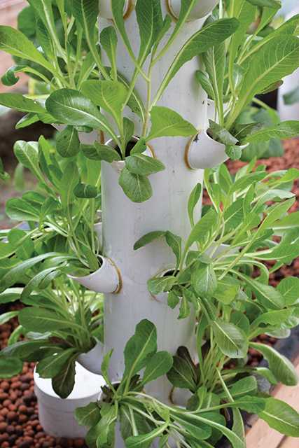 Aquaponics is a combination of aquaculture, which is growing fish and other aquatic animals, and hydroponics, the method of growing plants without soil. This symbiotic system feeds plants with the aquatic animals’ discharge or waste. In return, the vegetables clean the water that goes back to the fish.